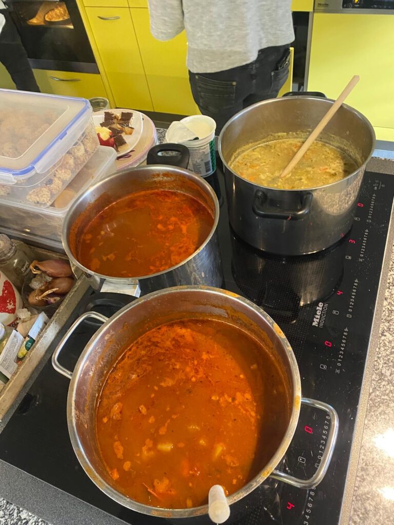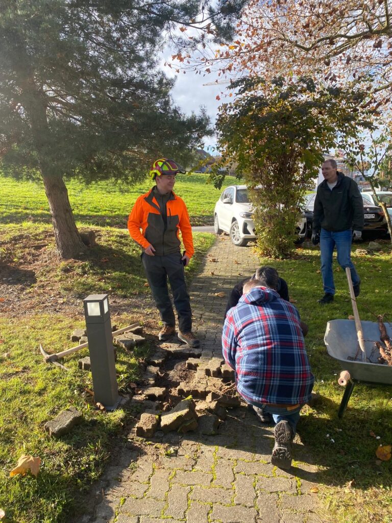 Es wurden arbeiten wie Bäume zurück schneiden, Wegsteine geebnet, neue Erde verteilt. Dazu gab es ein Kafi mit Gipfeli und zur Stärkung am Mittag eine feine Gulaschsuppe mit Zopf vom Feuer.